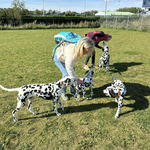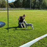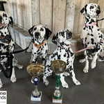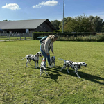 Vorige week zondag zijn we met Dalina & Philos naar de DIN-fonds dag in Delft geweest. Joke was er ook met Mila & Joya (Handsome Friends Cocktail Cherry). We hebben vanwege de leeftijd van de pups de ochtendwandeling overgeslagen en alleen mee gedaan met wat spelletjes, de keuring welke werd gedaan door José Lagendijk en uiteraard als afsluiting de beroemde worstenrace met Mila & Dalina. Het was fantastisch; onwijs gezellig, schitterend weer, prachtige locatie, goede sfeer en leuke activiteiten. Broer en zus wonnen zelfs nog Beste Reu & Beste Teef van de dag! Super trots op de kleintjes. Alle vier de stippels hebben zich fantastisch gedragen.